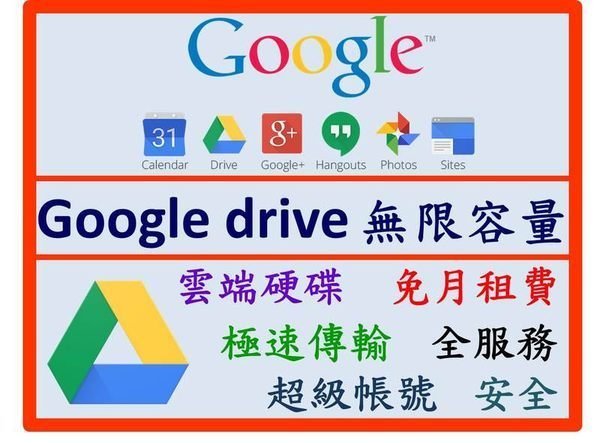 我們的 Google 帳號有無限空間 (10TB),可持續使用,免付月費。