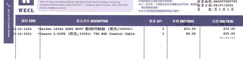另外好似 "秋葉X" 有條 Belden頂班 75 ohm 天線是 1芯 , 2 鍚 紙 綱,(分 開2層 ), 再有 銀金屬綱, 再有一條 金屬外層小 水線 先至包膠的, 好 堅