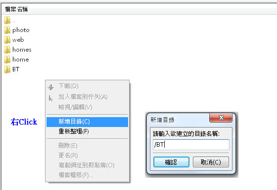 用FTP軟件入去NAS,新增一個叫"BT"既目錄
