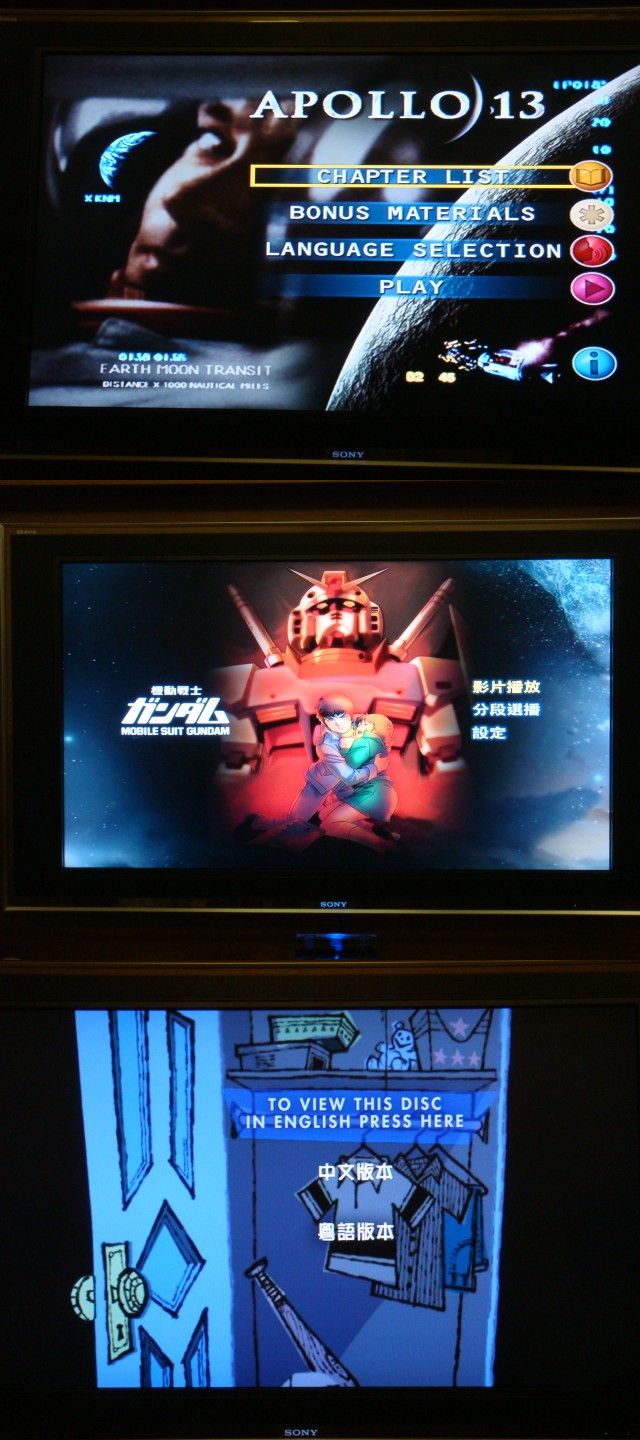 跟住順序按制1,2,3,4,5,6,7,8,9,0. 部BD30自動reset. 自動著機之後放入2區, 3區DVD碟, 畫面出晒黎: