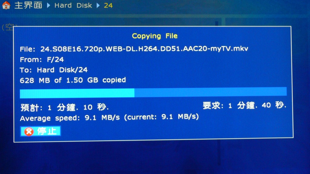 有兩個方法,要快的可由pc的e-sata-->K8的e-sata,速度如電腦直copy一樣