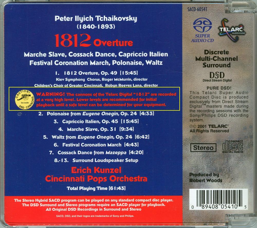 I listen all the tracks of Telarc 1812 with relatively high volume setting 60.0dB at Mark Levinson No.32 Preamp.