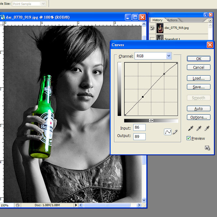Did u add contrast to the image? The dress & hair look very good! What have u done in PS? Also the bottle color is very very very green....... :001: :001: :001: