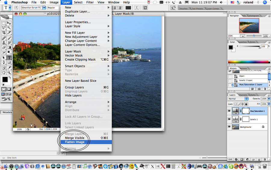 Now "flatten" the image under the "Layers" menu
