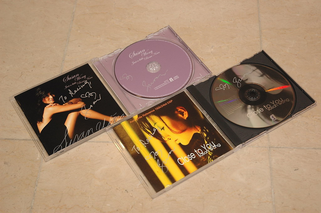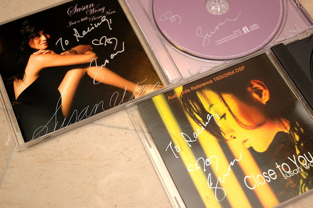Racingboy 寫:小弟一路無聽開佢嘅歌,但為了想有位靚女簽名,唯有買了兩隻 SUSAN 嘅貴碟(街價 HK$80,家陣用明屆價 HK$100 買了2隻 )比佢簽名 !