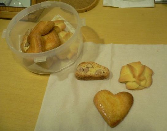 有杏仁味和椰油味曲奇, 另加咖啡餅, 同用剩餘物資整嘅提子麥片曲奇(量太少, 已 ko