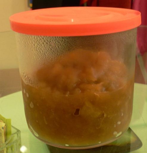 隻豬手仲未完成, 只喺煮熟咗, 仲要用焗爐焗脆層皮, 要臨食先好焗. 食德國豬手通常會配酸菜酸瓜, 用黎中和豬手啲肥膩感. 今次上堂就教做酸蘋果醬, 用蘋果醋加白酒煮蘋果...哇哇! 好很酸~