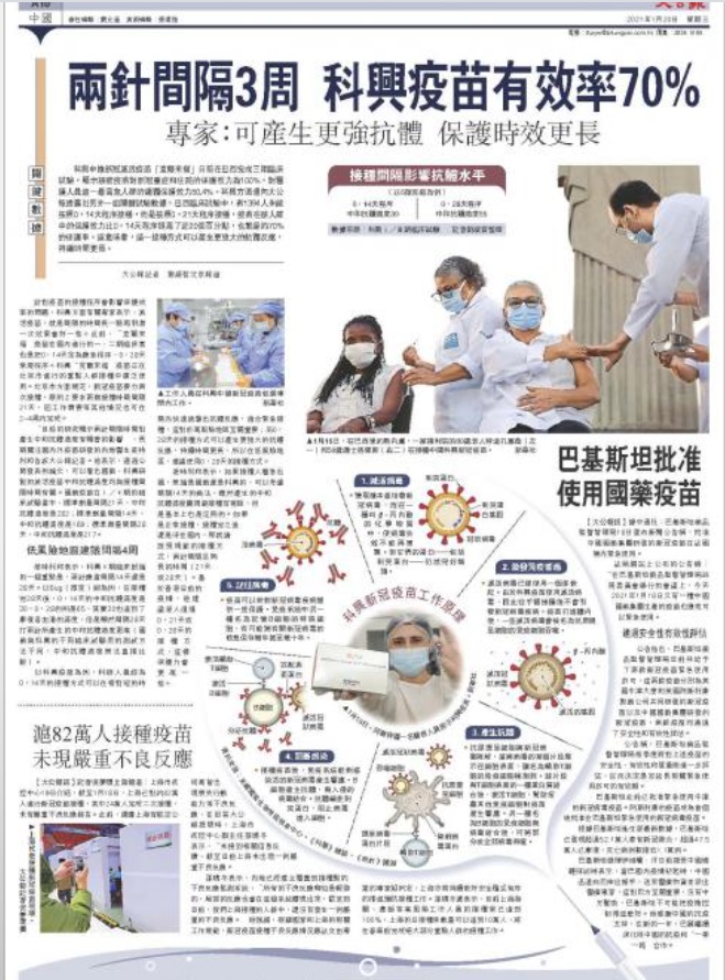 印尼及土耳其已开始大规模为其国民注射科兴疫苗,希望上半年内隻疫苗得唔得特区政府可以掌握到较充份的数据。