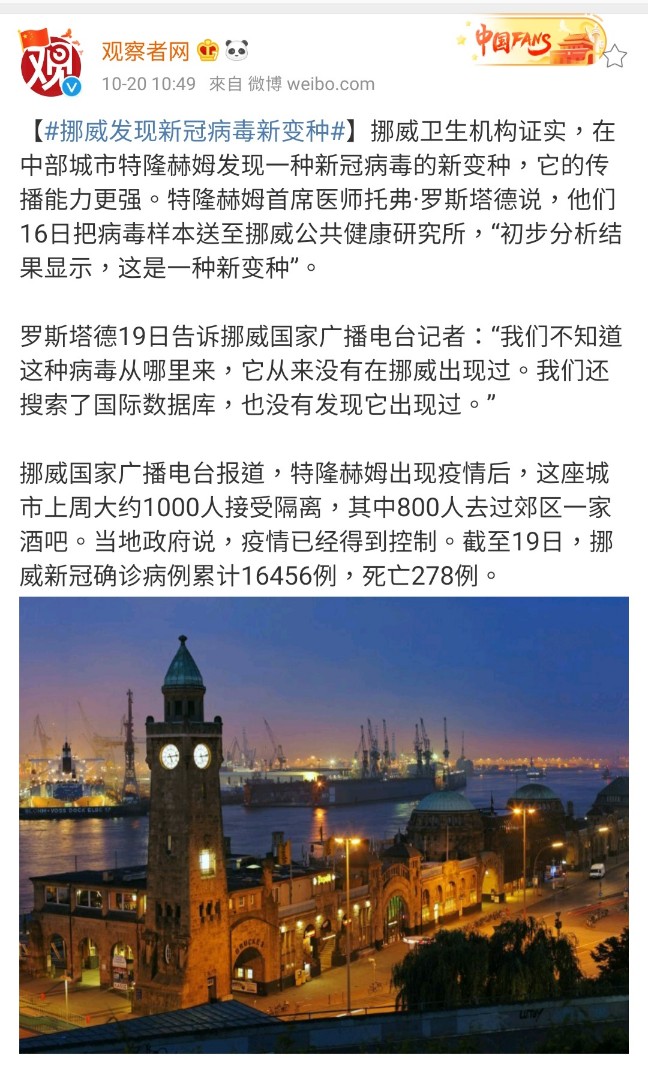 Campagnolo 寫: 挪威出現新變種新冠