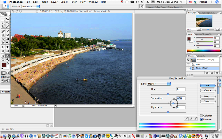 Now adjust the saturation slider to the right. Use your own eyes to judge. Often, adding 30 to 40 to saturation is fine. There is no fixed amount, it will be different for different photos. :modlaugh: