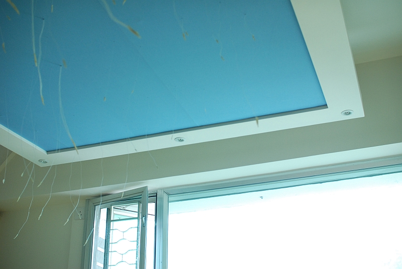 遲 d 掛左上個天花板先逐條剪短, 貼住天花變 :008: :008: