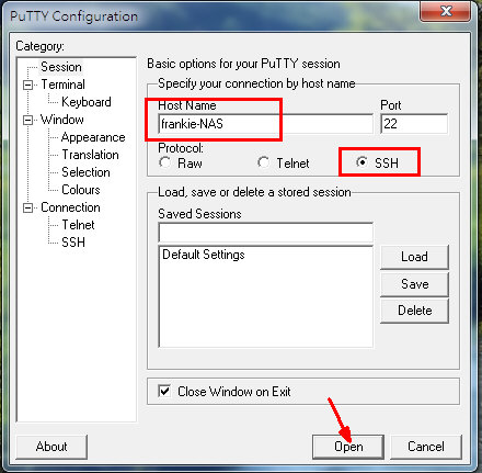 開Putty,打NAS LAN IP or NAS既名