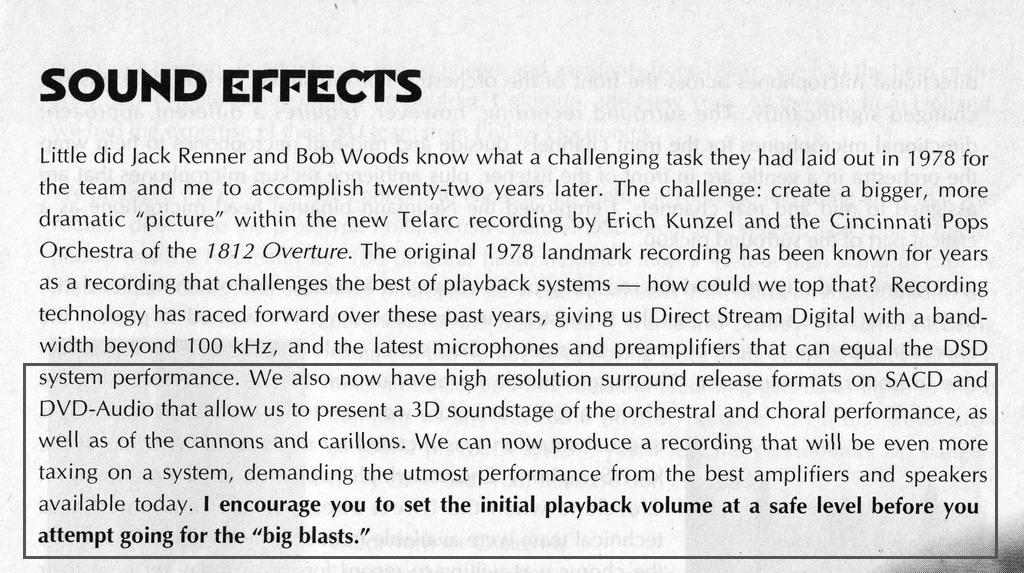 I listen all the tracks of Telarc 1812 with relatively high volume setting 60.0dB at Mark Levinson No.32 Preamp.