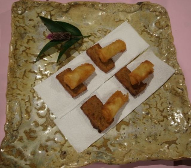 南瓜春卷, 想不到很好吃. 下面一片餅, 小小甜, 好吃但吃不出有什麼 :question2: , 好像有點金棗.