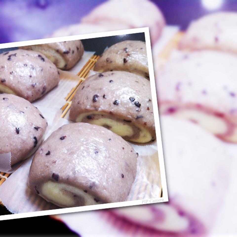 紫色係紫米酒糟雙色饅頭