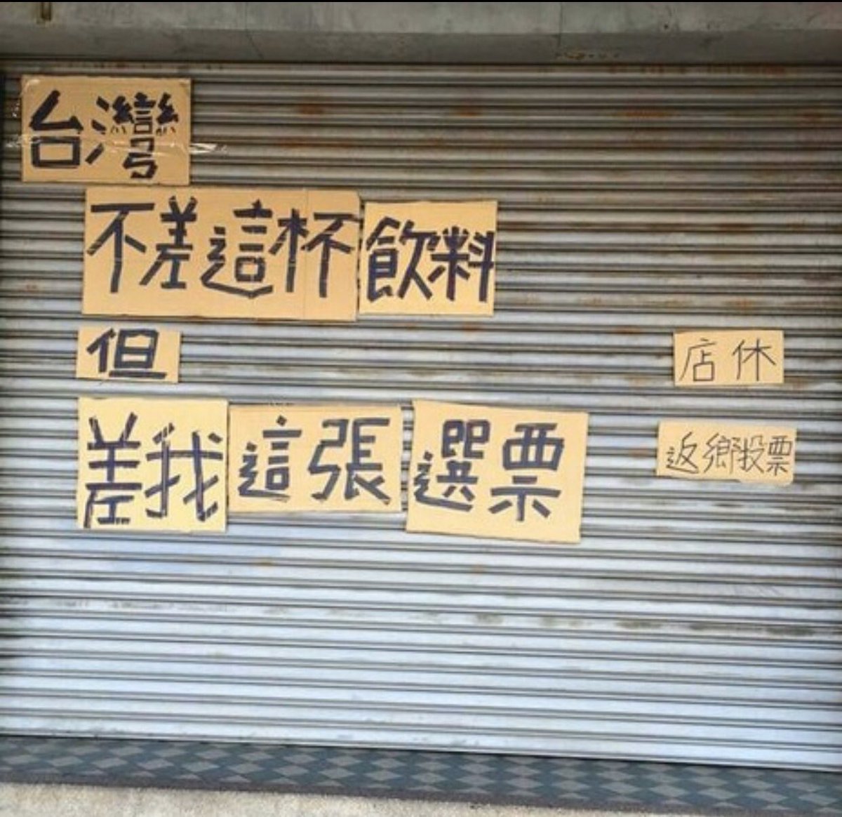 台灣好多鋪頭今日唔開,等員工可以回/留在戶籍所在地投票。