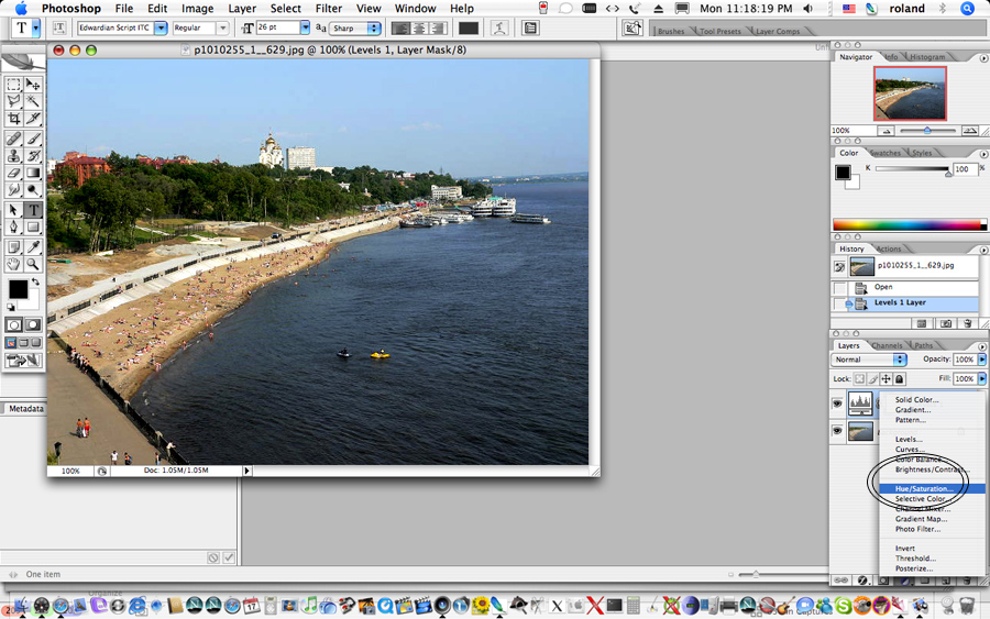 Select "Hue/Saturation" in the Layers window