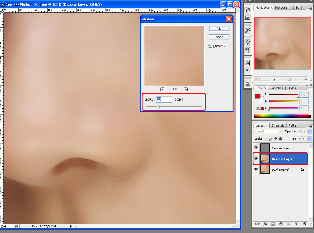 射擊人 寫:跟手隨個人喜好調較返Denoise Layer 既 Opacity...