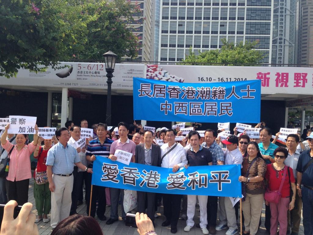 10多名中西區居民代表,手持橫額,在區議員陪同下,早上由添馬公園出發,遊行至特首辦外的龍和道,與在場佔領的學生代表對話,要求重開路面。