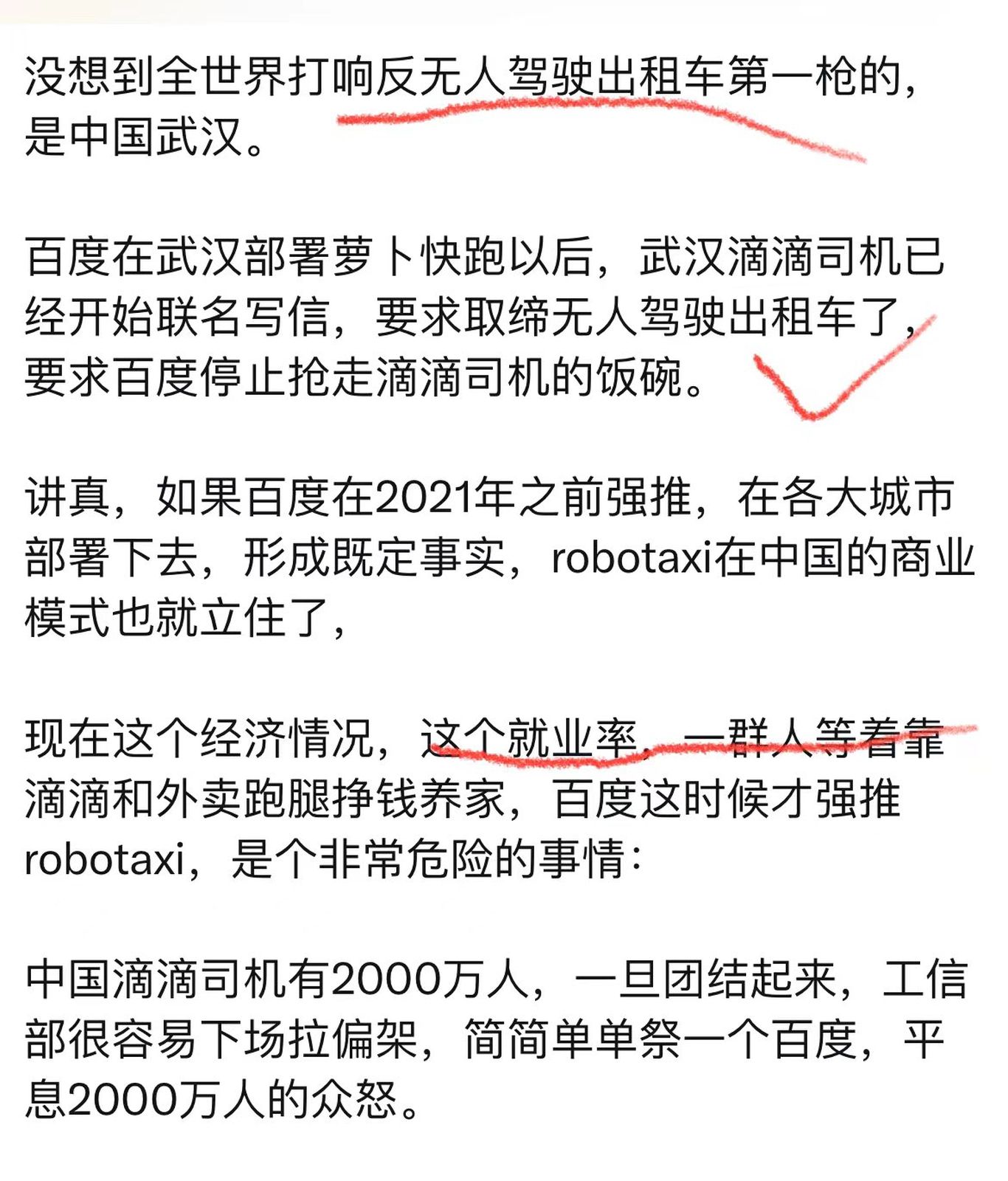 如果robotaxi扩张太快,真抢了这些人的饭碗, 他们绝对不敢折腾,而且大部分人还有各种办法周转一阵子,比如把车卖掉、把房卖掉,或者啃老婆一阵子。