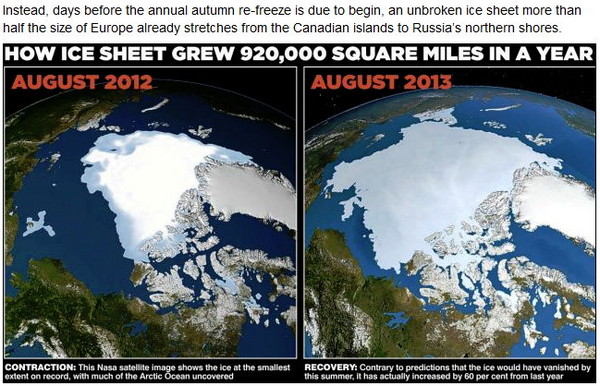 唔好給懷疑論者欺騙,2013年北極海冰只是從2012年歷史新低回升少少!長期趨勢仍然減少得非常快!![]()