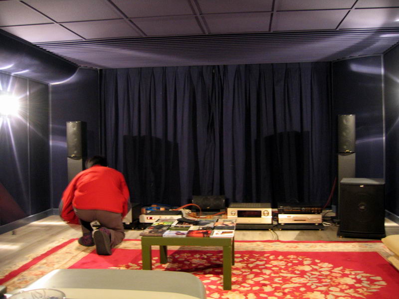 The design and building of the AV room was carried out mainly byTony himself together with the help of some carpenters. The entire ceiling and side walls are fitted with absorbent materials. Besides, they are all in dark blue or black in colour.