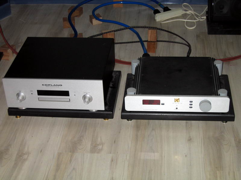 On the left hand side are Copland CDP with Moon Integrated Amplifier.
