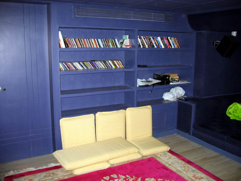 On the right hand side wall, there are storage shelf for the DVD and CD software.
