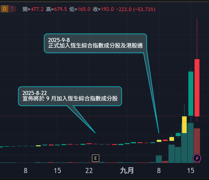 2. 每次恆指季檢報告新/重新納入任何指數的半新股,留意通告日期到正式納入指數日期的股價變化,看看有無機會到入指數當日前入定貨炒一轉。