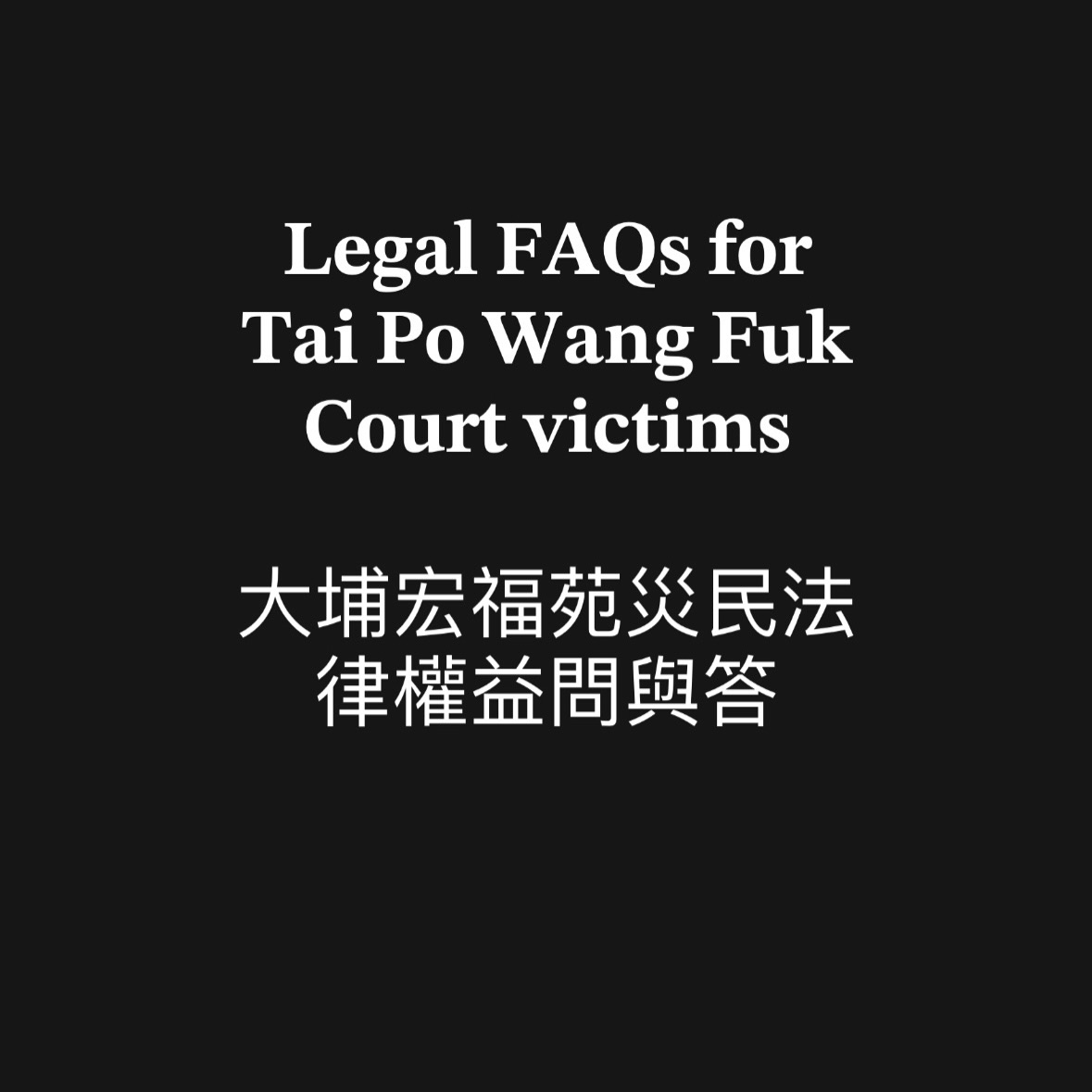The Law Society of Hong Kong has set up a temporary panel under the “Free Legal Helpline – Tai Po Tragic Fire” (28401011) to provide preliminary free legal advice to the public from our panel of solicitors. The eligible cases will be assigned to panel practitioners for providing up to 45 minutes of free legal advice to the caller.