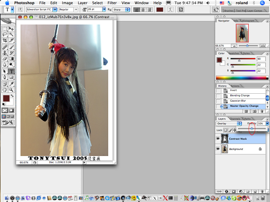 ! I used your photo for the tutorial because you thought the contrast was too high (反差太大). I hope you don't mind!