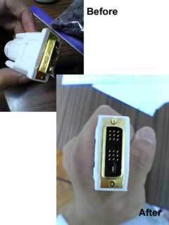 After I bought this cable, it could not connect to my projector (HC 900). :a007: The DVI plug was too big. :flareup: Well, I discussed my situation with Racingboy and he gave me two suggestions: 1. Give me a full refund. :038: 2. Try to make the plug “smaller”. :dont_un: