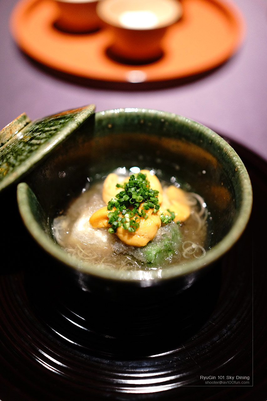 呢個叫1湯3味, tofu(豆腐) + Mochi(做和果子外皮果D) + Yomogifu(草羮) + 日本清湯(仲有海膽鋪面)