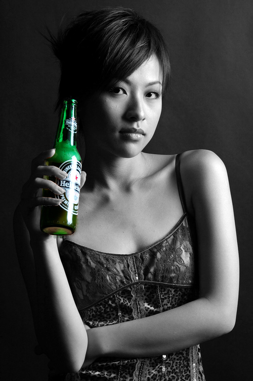 I want to change this picture into black & white, but leave the bottle in green, how can I do that in PS, any big brother can give me a hand? :sorry: :sorry: :sorry: